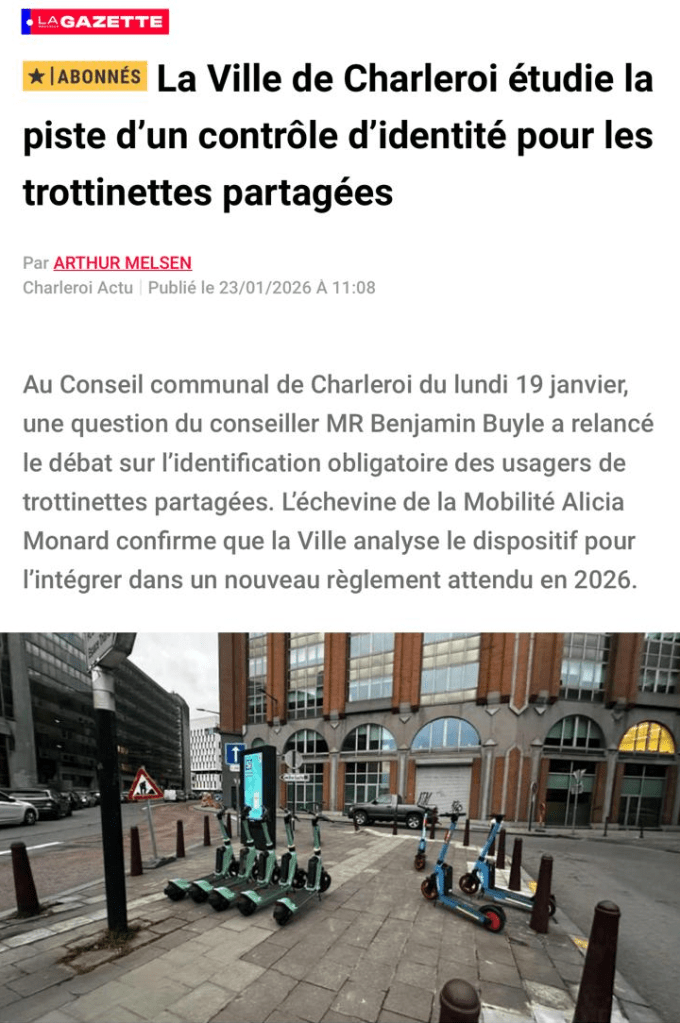 « La Ville de Charleroi étudie la piste d’un contrôle d’identité pour les trottinettes partagées »